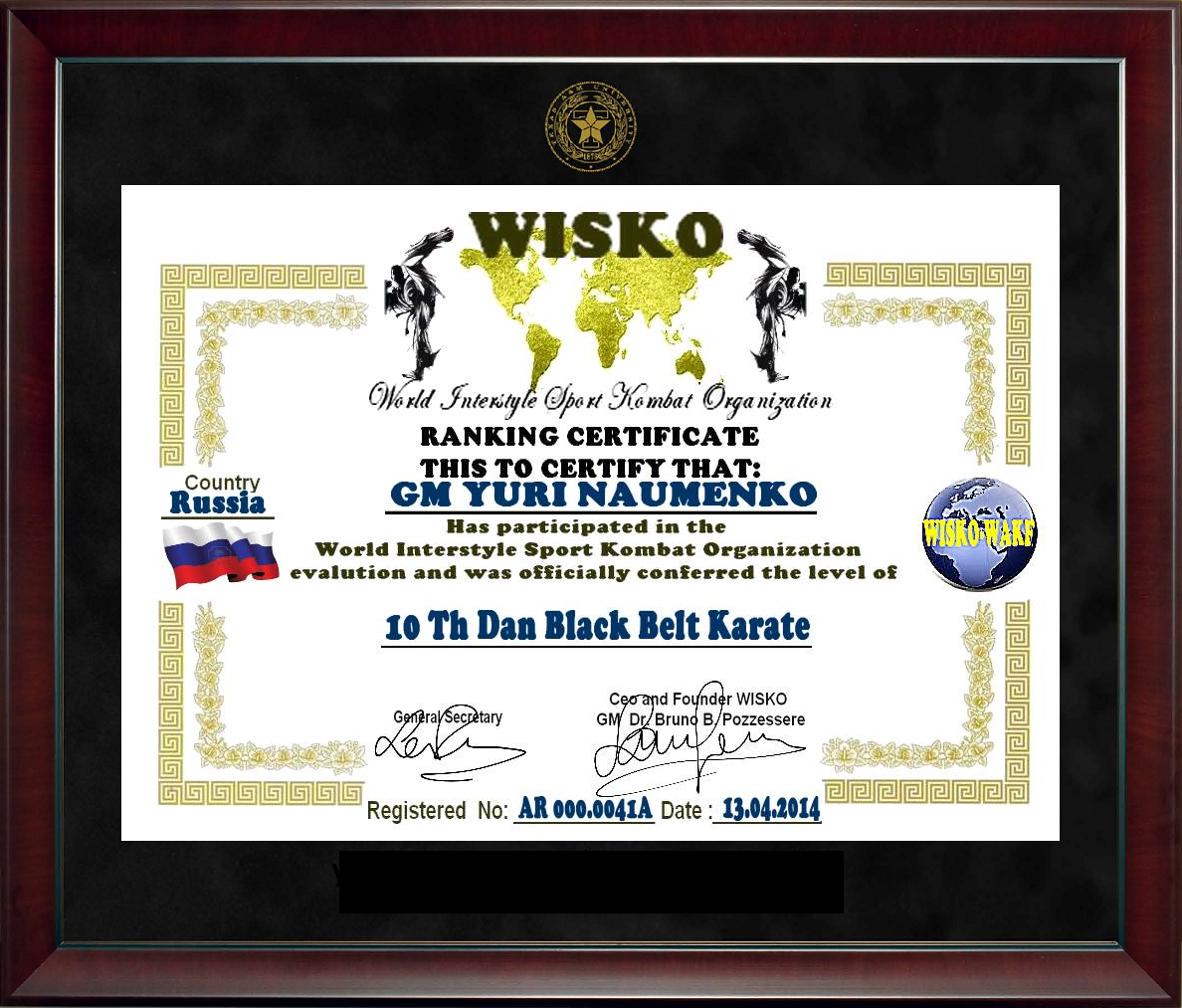 President of the WAKF, 宗家 Grand Master Dzyudan ABSOLUTE KARATE 10 - th black belt degree 絶対空手